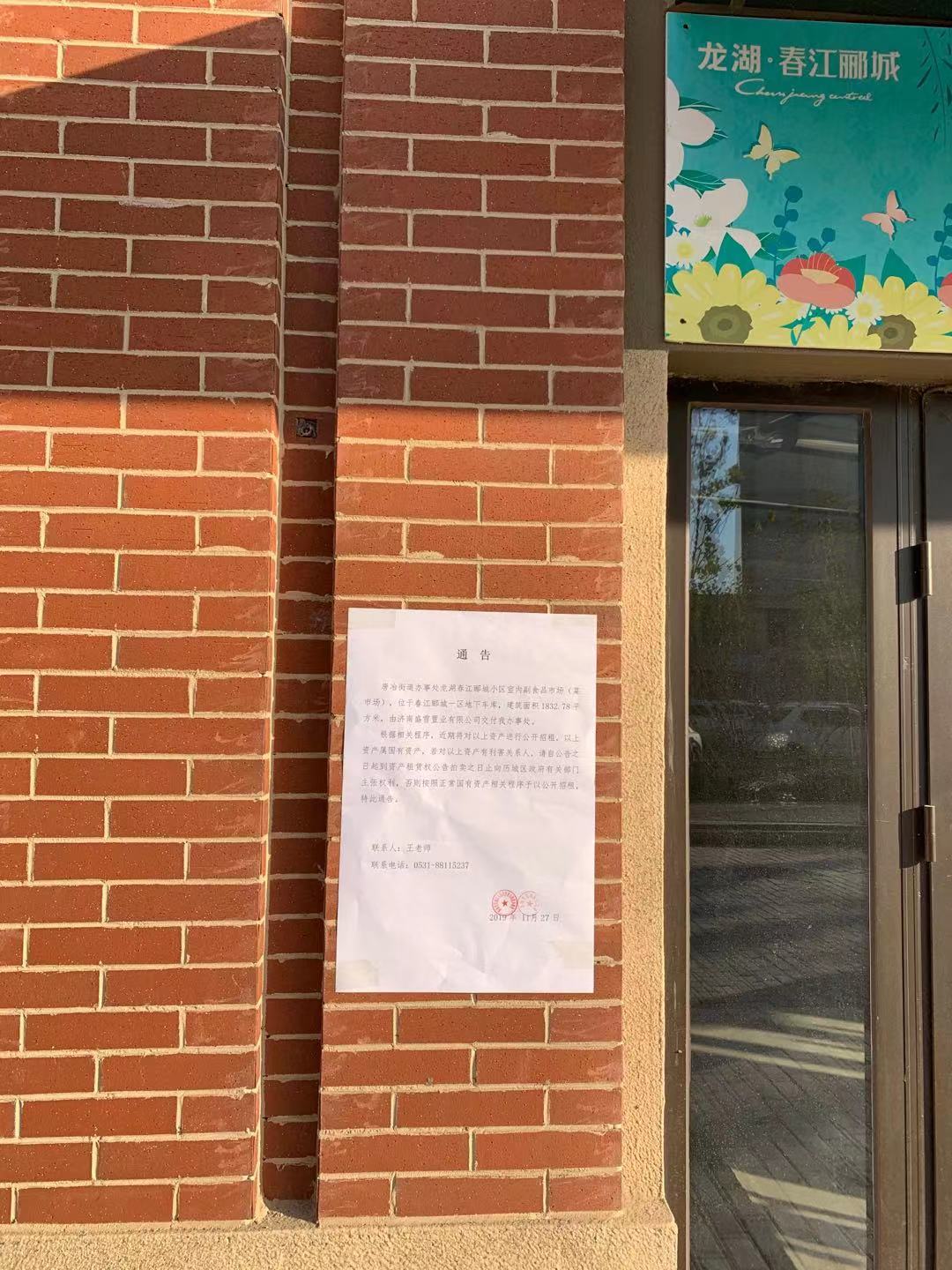 受委托,我單位定于2019年12月26日10時在中國拍賣行業(yè)協(xié)會網(wǎng)絡(luò)拍賣平臺(http://paimai.caa123.org.cn)以增價的方式現(xiàn)狀拍賣濟南市歷城區(qū)唐冶街道辦事處龍湖春江酈城小區(qū)室內(nèi)副食品市場(菜市場),位于春江酈城一區(qū)地下車庫10年期租賃權(quán),建筑面積1832.78平方米(以實物現(xiàn)狀為準),參考價年租金1311170.88元,競買保證金130萬元。