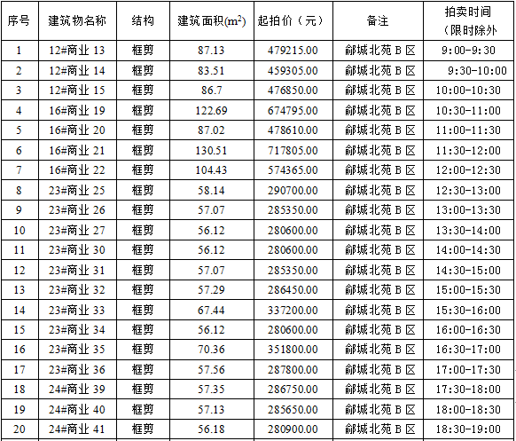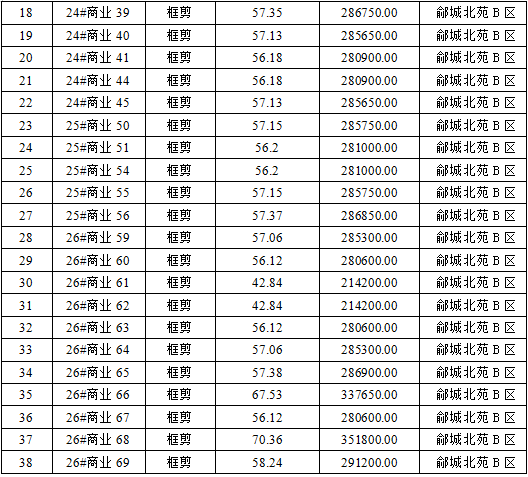 夏津縣鄃城北苑商業(yè)房38間,結構為;框剪結構。 (詳見本公告第一條)