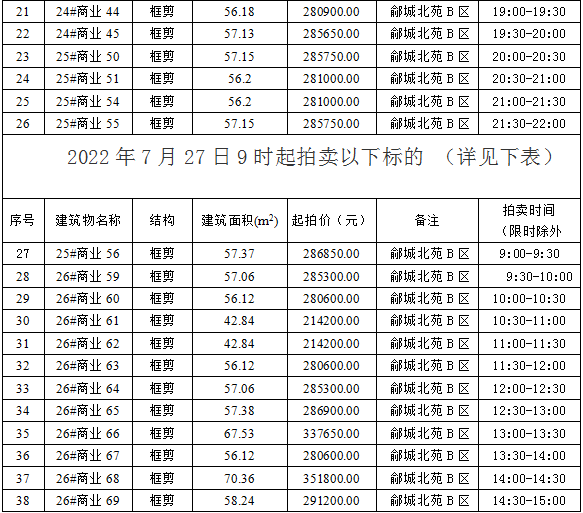 網(wǎng)上報價時間為2022年7月26日9時起拍賣以下標的 (詳見下表):